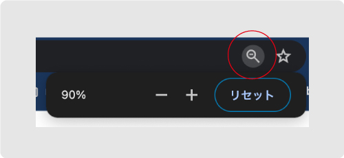 ショートカットキーを打つとアドレスバーに+マークが入った虫眼鏡らしきアイコンが出現します。これをおして調整することも可能です。星マーク(ブックマーク)の横にあるアイコンです。