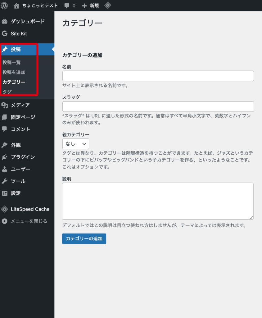 2. カテゴリーの追加→空欄を記入