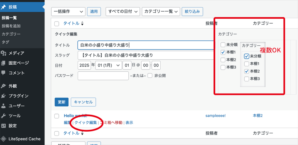 3. 投稿記事→クリック編集→チェックボックスを追加