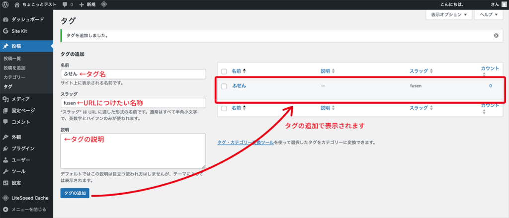 1. 投稿→タグにアクセス→空欄を記入