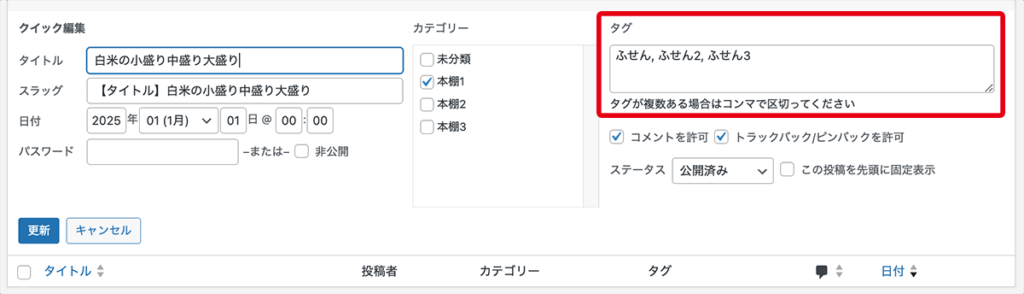 大量にタグを設定したい時は、ここに入力するといいですよ〜