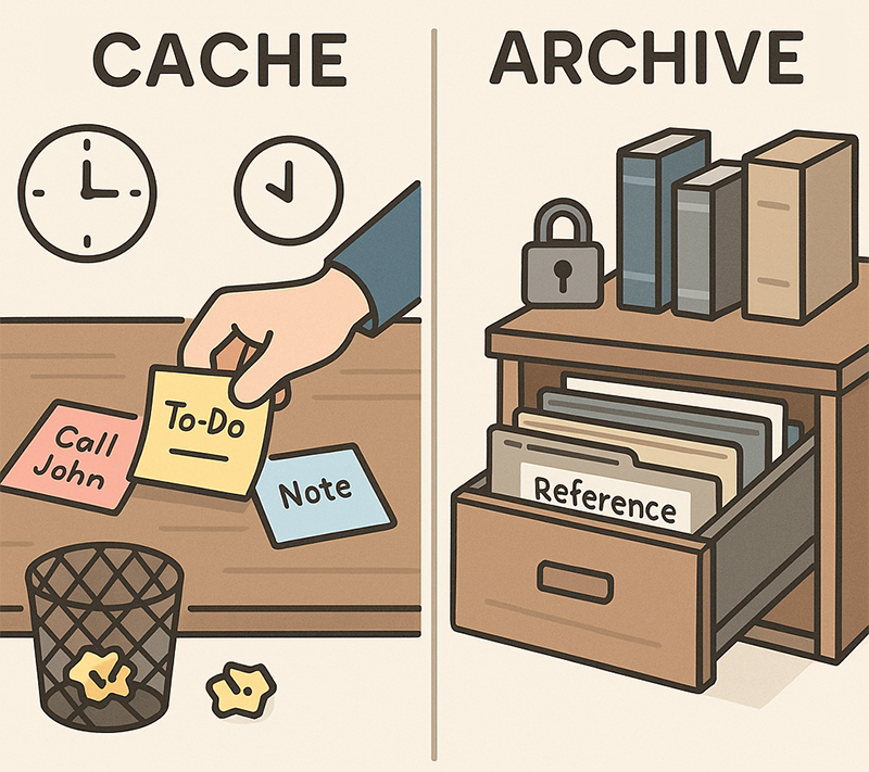 | アーカイブ | 長期的な保存 | 基本的に勝手に消えない(自分で操作) | メールや記事などをあとで見返すために残す |